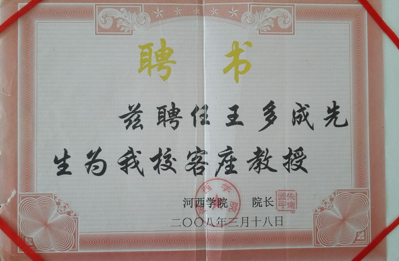2008年河西學院客座教授聘書